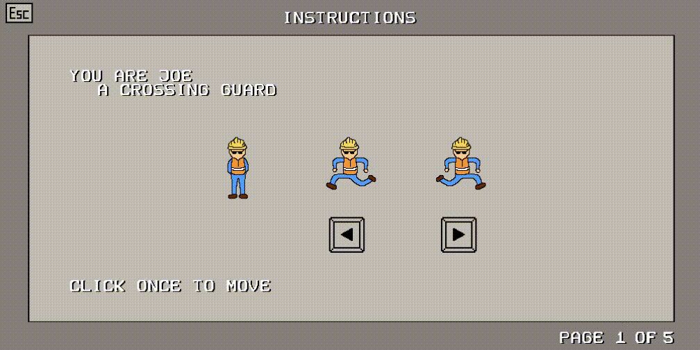 Crossing Guard Joe is a arcade game. Inspired by the original game of the same name on Steam, this version recreates its core mechanics for educational purposes using a text-based interface.