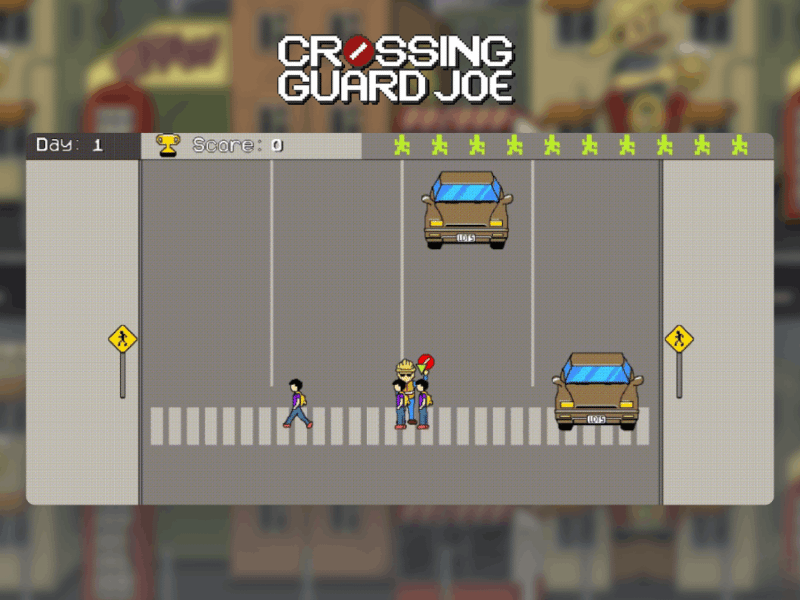 In the game, you take the role of Joe, a crossing guard responsible for helping children cross the street safely. Alongside the core gameplay loop, the project also includes customization features, allowing players to change character outfits and car colors.